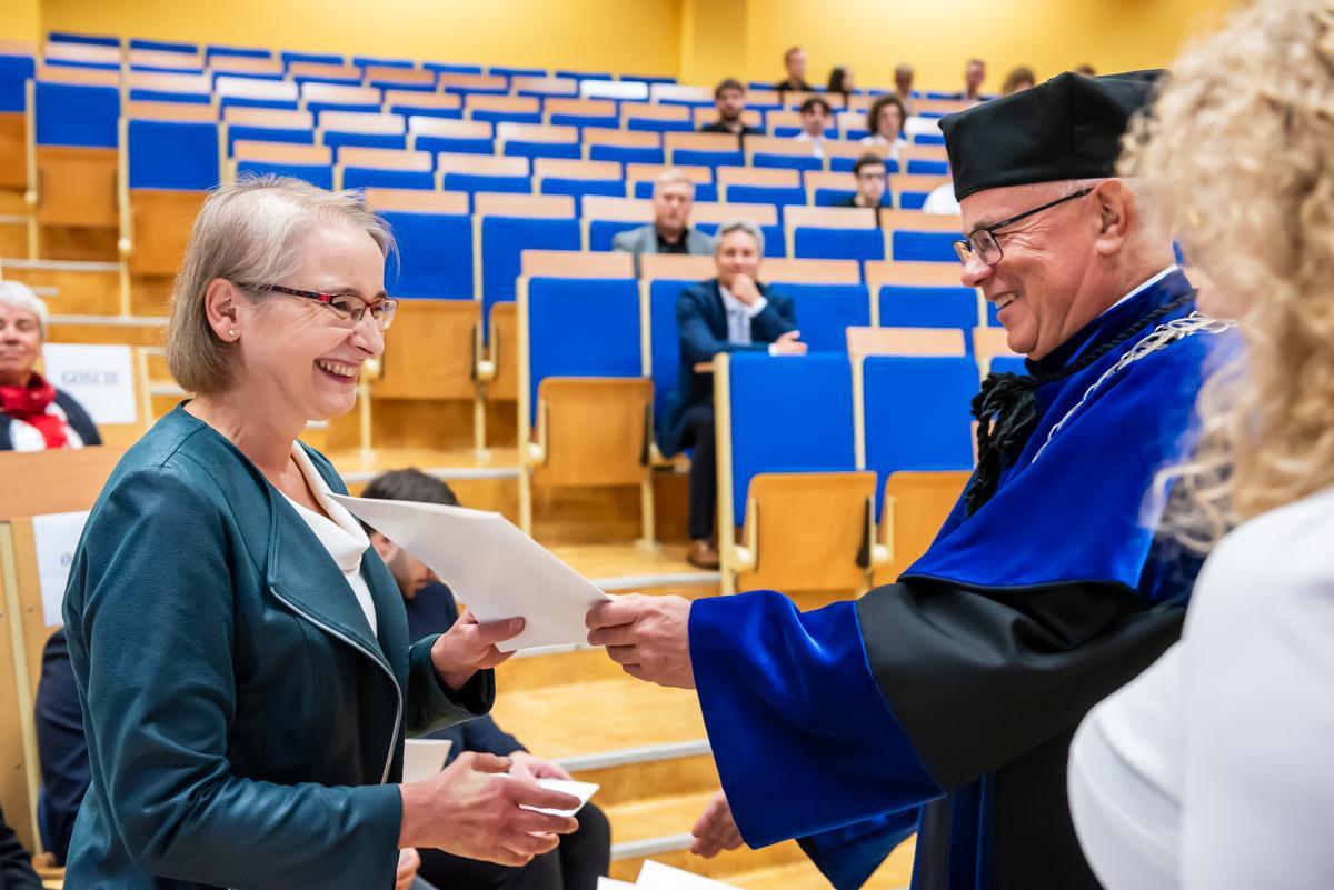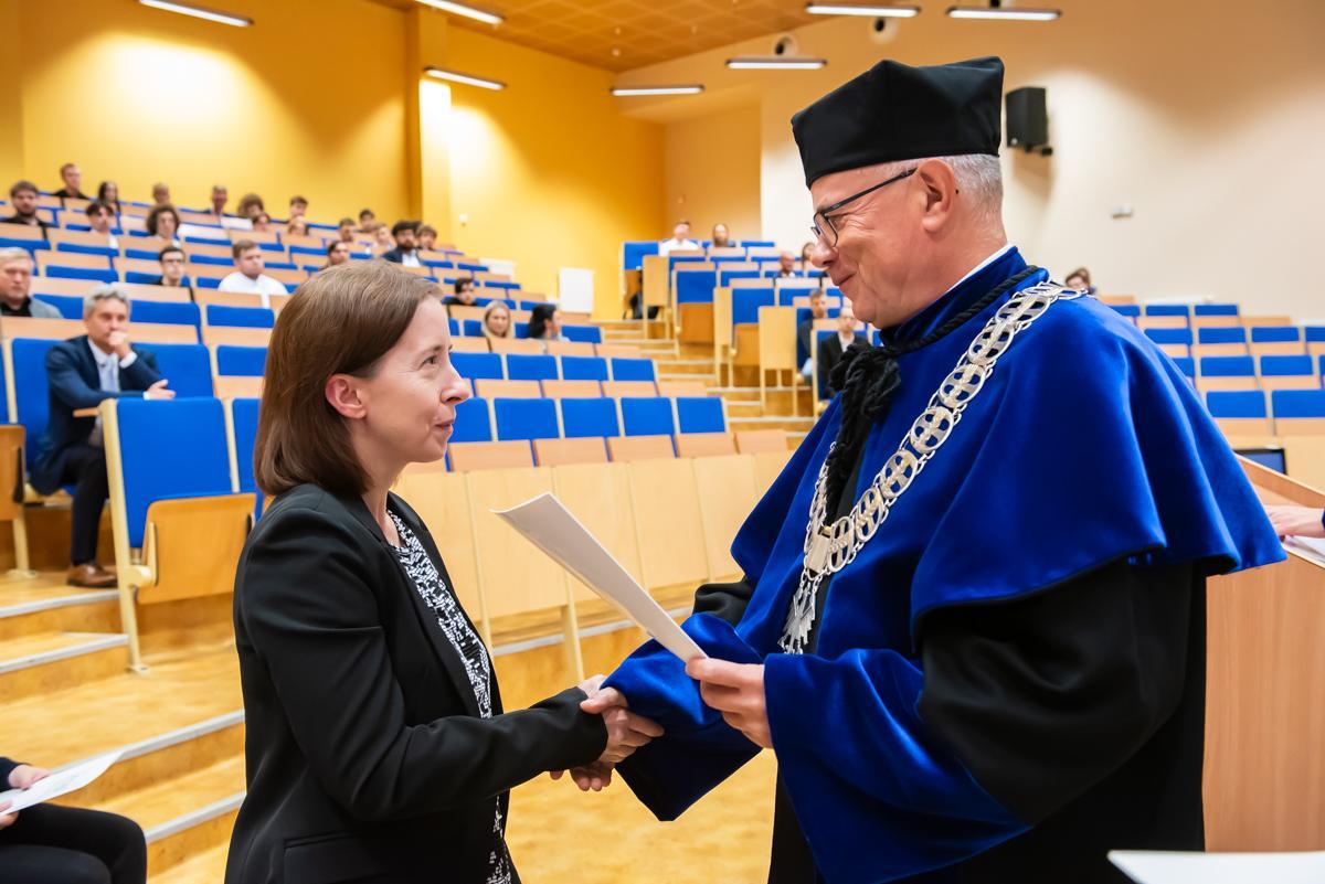 W dalszej części głos zabrała prorektor UWM ds. Collegium Medicum, dr hab. n. med. Magdalena Krajewska-Włodarczyk, prof. UWM, która w imieniu Rektora Uczelni i własnym złożyła życzenia pomyślności w nowym roku akademickim studentom i pracownikom wydziału.
