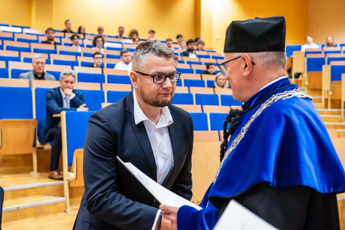Gratulacje odebrał także dr inż. Krzysztof Ropiak, który niedawno uzyskał stopień naukowy doktora w dyscyplinie informatyka techniczna i telekomunikacja.