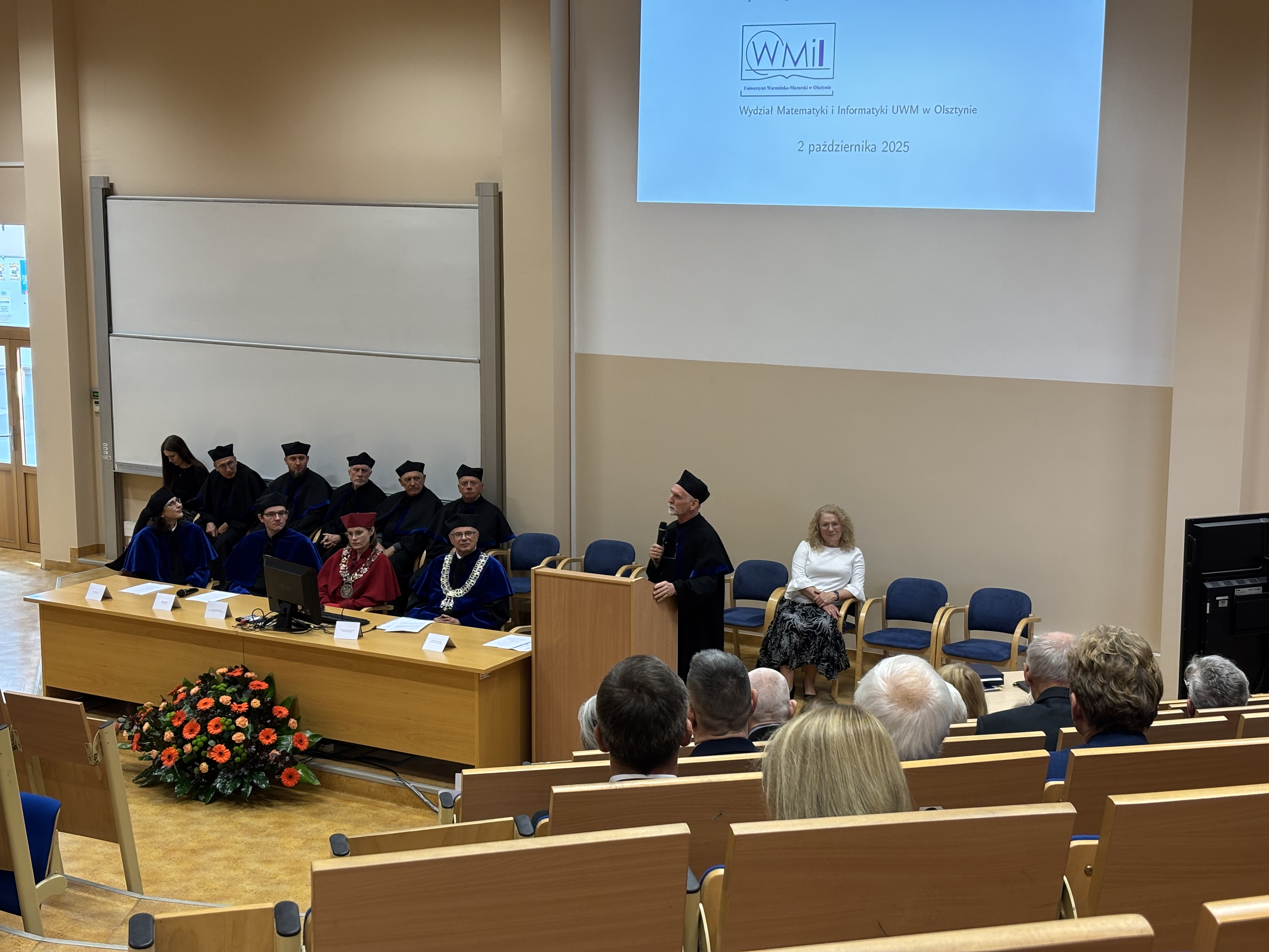 2 października 2026 r. w auli B miała miejsce uroczysta inauguracja roku akademickiego 2025/2026 na Wydziale Matematyki i Informatyki Uniwersytetu Warmińsko-Mazurskiego. To wyjątkowy moment w życiu społeczności akademickiej – szczególnie dla studentów pierwszego roku, którzy właśnie zostali oficjalnie włączeni do grona wspólnoty uniwersyteckiej.
