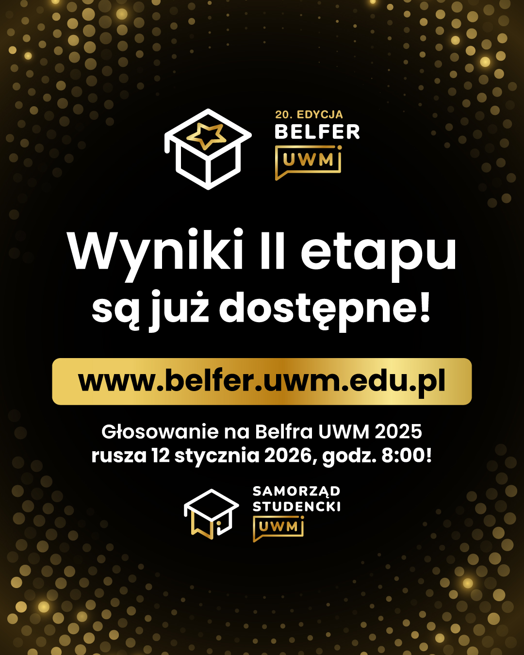 Głosowanie w III etapie (uczelnianym) plebiscytu Belfer UWM 2025 rozpocznie się 12 stycznia, a zakończy 16 stycznia. Głosy będzie można oddawać codziennie, po zalogowaniu na uczelniane konto Microsoft.