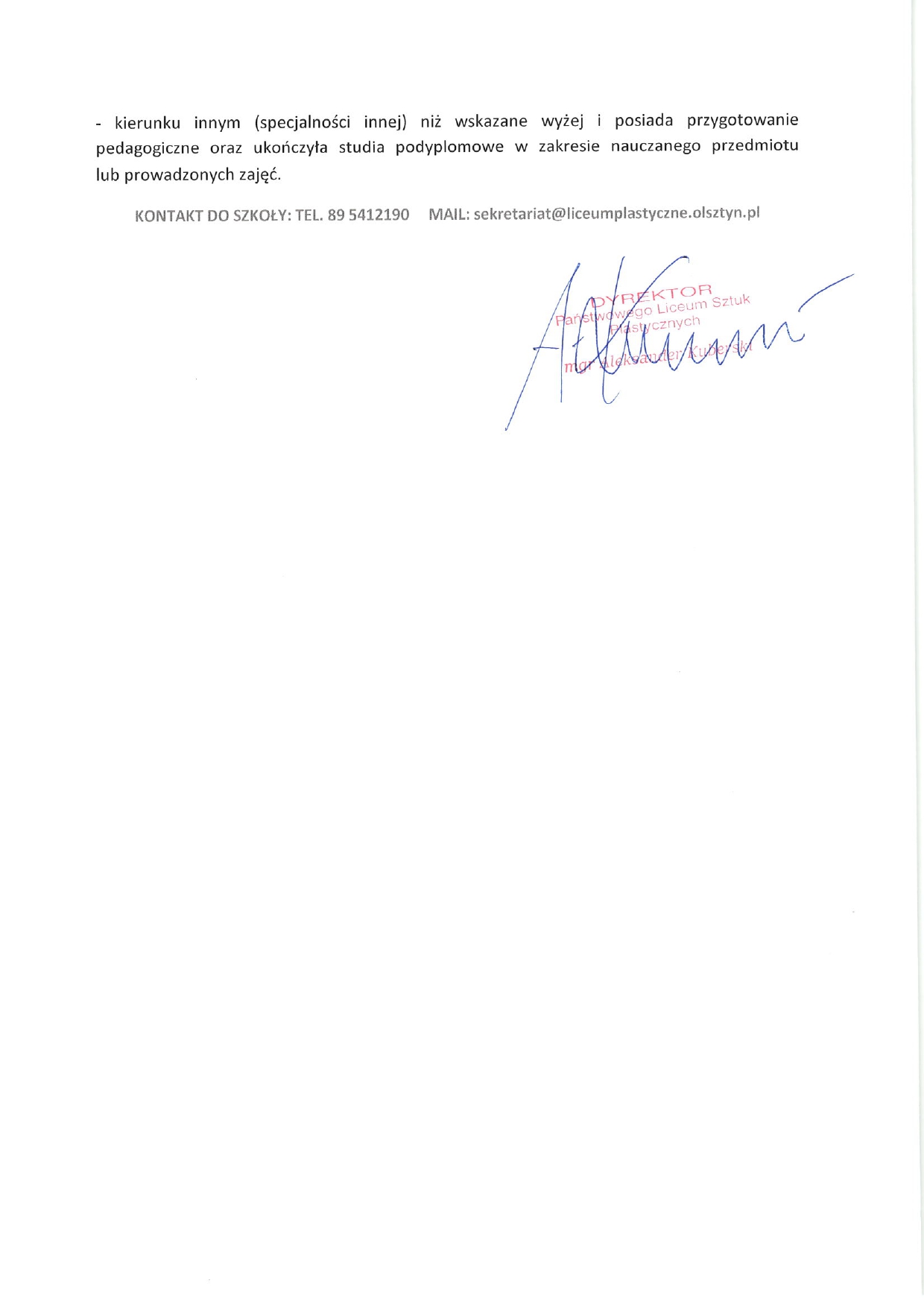 Zainteresowane osoby prosimy o kontakt pod numerem 89 541 21 90 lub mailowo: sekretariat@liceumplastyczne.olsztyn.pl
